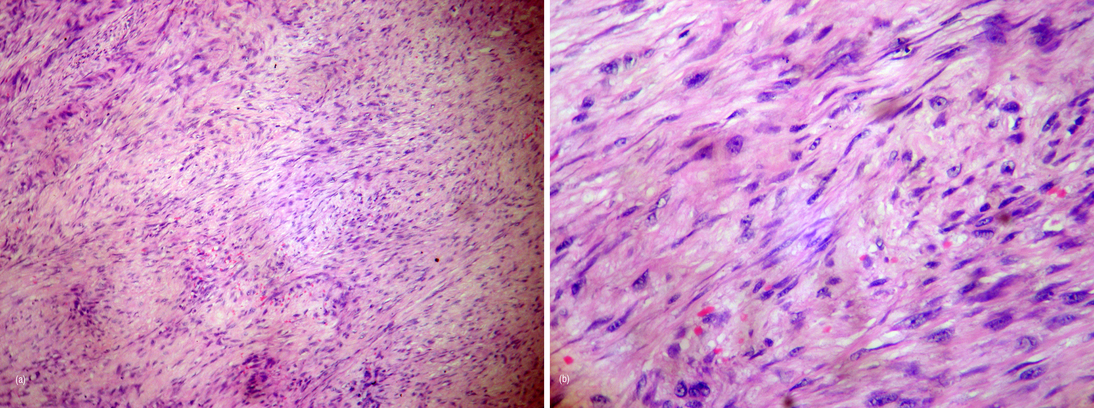 Figure 2a,b: Spindle shaped cells with no atypia.