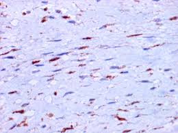 Immunohistochemistry on spindle cells showed focal cytoplasmic positivity with SMA, diffuse nuclear positivity with beta-catenin and negativity for Desmin confirming the diagnosis of fibromatosis.