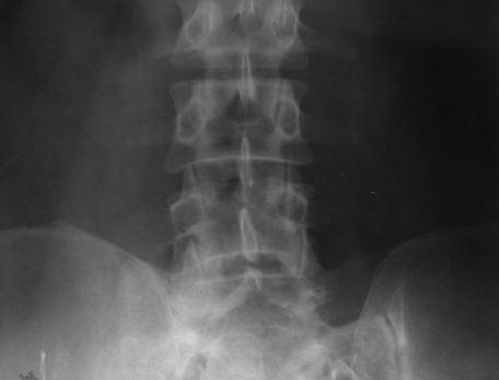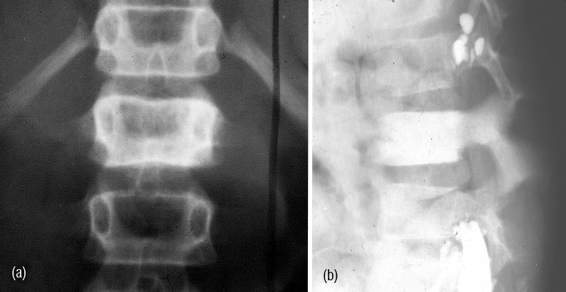 Figure 11a,b: Ewing’s sarcoma – Ivory vertebra of L1.