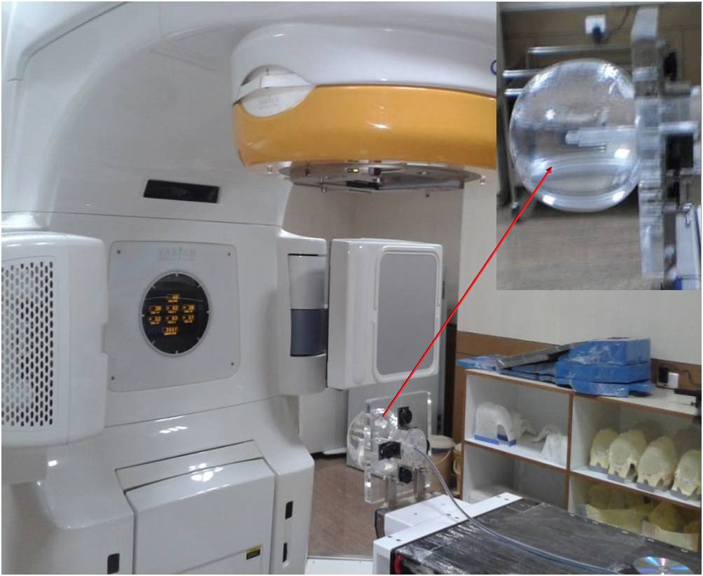 Figure 4: Setup arrangement of Spherical phantom for absolute dosimetry