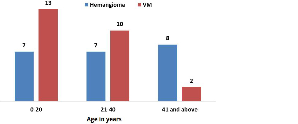 Figure 1: Graph showing age distribution in vascular anomalies.