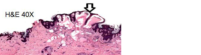 Figure 4: Lymphatic malformation- Papillary dermis is expanded by thin-walled lymphatic channels, accompanied by verruciform hyperplasia.