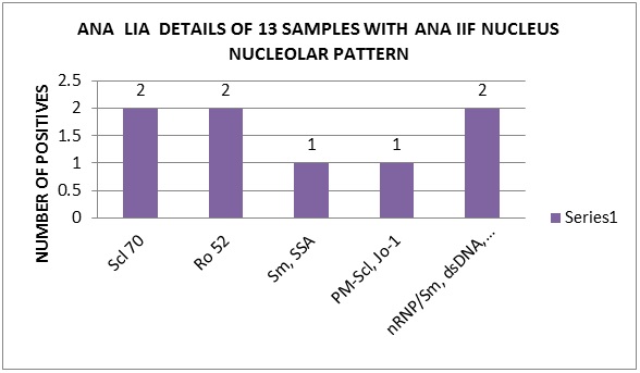 Figure 6: ANA LIA details of 13 samples with ANA IIF nucleus nucleolar pattern.